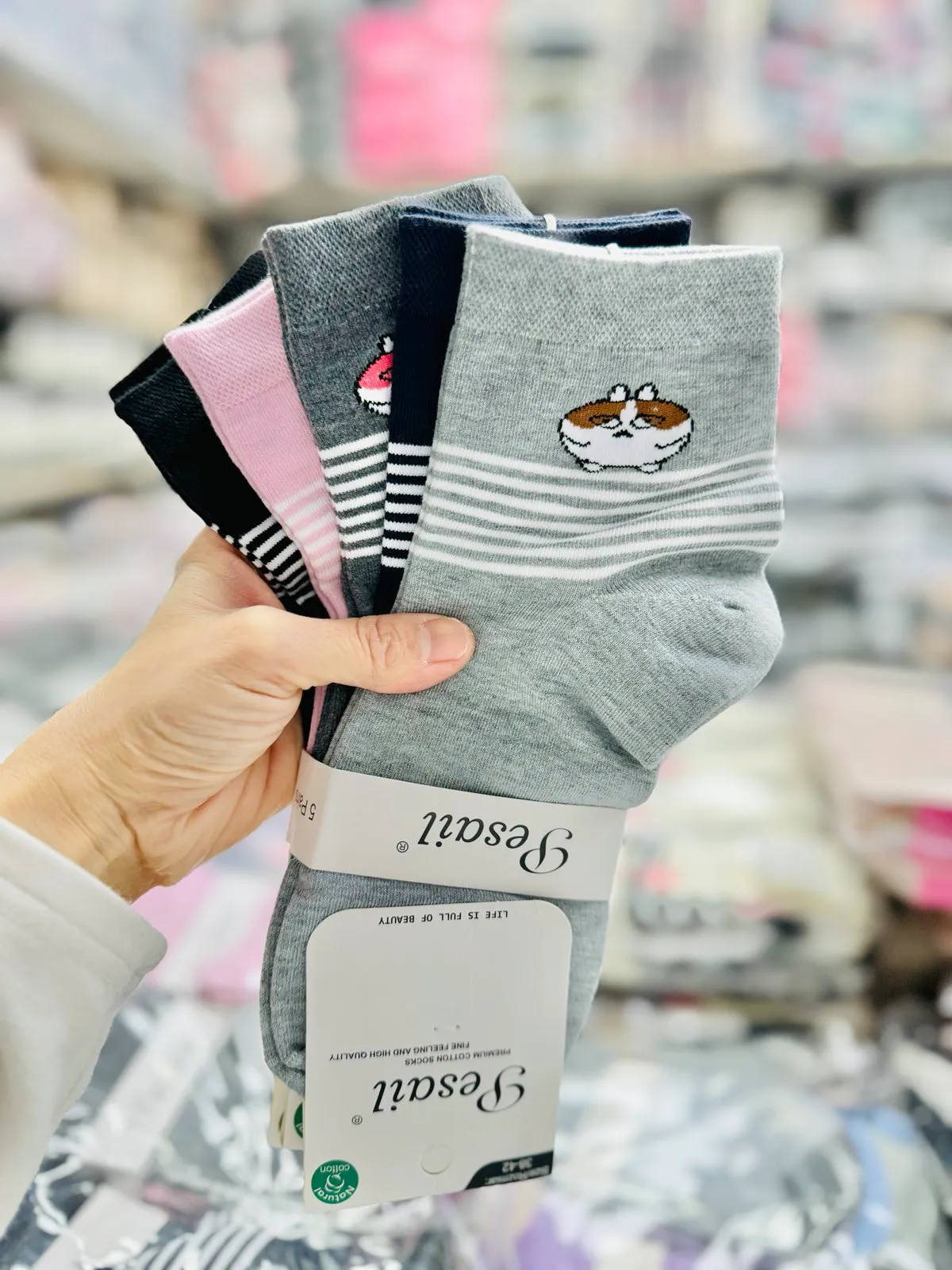 Skarpetki damskie z kotkiem, zestaw 4 par, szary/różowy/czarny