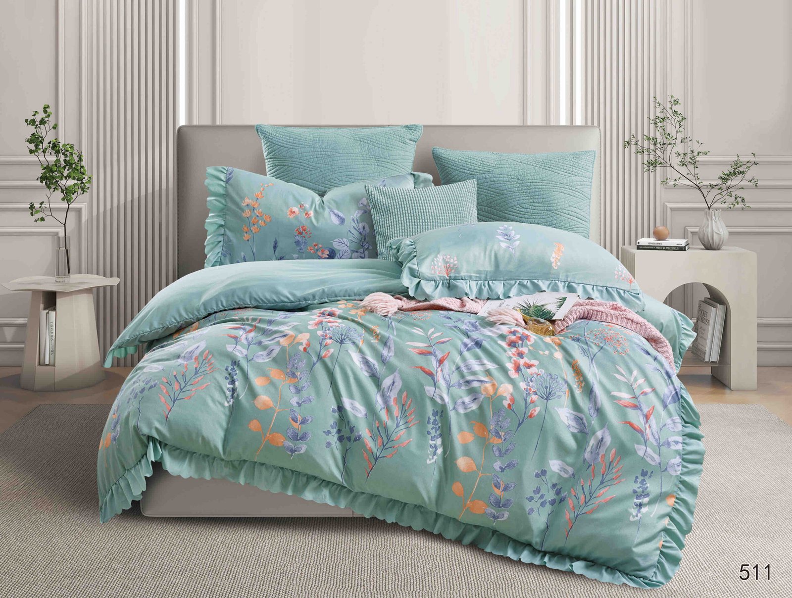 Satyna bawełna pościel z falbankami 200*220cm 3cz